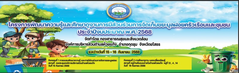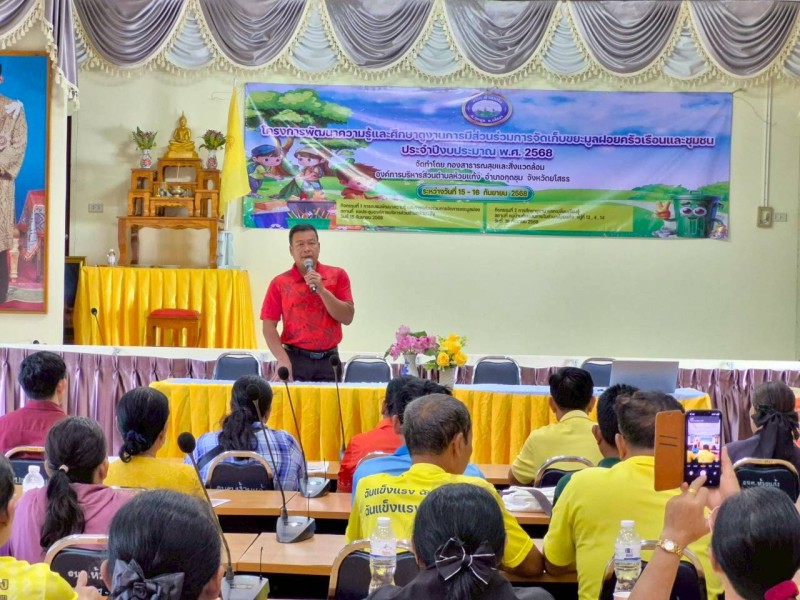โครงการพัฒนาความรู้และศึกษาดูงานการมีส่วนร่วมการจัดเก็บขยะมูลฝอยครัวเรือนและชุมชน ประจำปีงบประมาณ พ.ศ. 2568 (วิทยากรจาก สำนักงานทรัพยากรธรรมชาติและสิ่งแวดล้อมจังหวัดยโสธร)